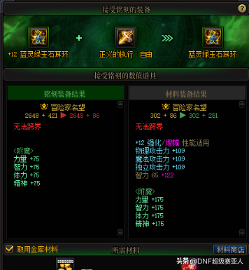 这是首次可以跨界,比较可惜的是只能跨界防具、首饰以及特殊装备,无法跨界武器。