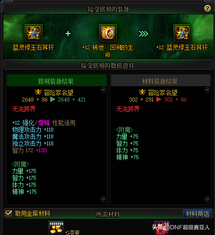 DNF在6月15日版本更新中对铭刻/继承进行调整,铭刻/继承系统效果由变更为,因此高等级史诗可将打造铭刻至低等级装备上。
