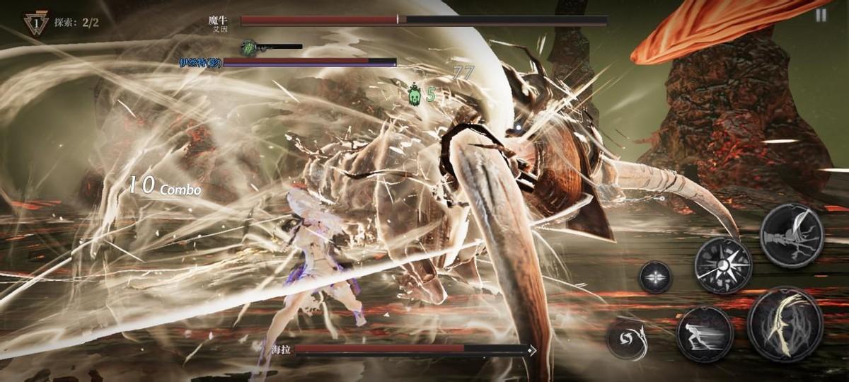 除了角色立绘之外,《古魂》游戏的实机画面也具有着极大的亮点。《古魂》具有着传统act的连招模式,能够通过连招发挥极大的动作效率,但是却也有着高难度的玩法。玩家的微操技术过硬,就可以凭借着娴熟的技术进行boss攻击的闪避,还能够打出连击带来的刀光画面,视觉冲击非常的震撼。