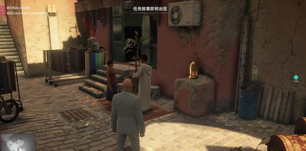 首先我们来到任务故事触发地点,就是图中穿白色衣服的某知名商家的店主,偷听对话我们发现目标就在楼上,那么既然知道目标所在,我们就开始行动吧。