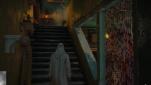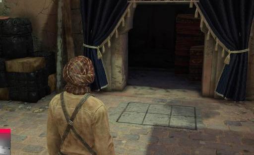 我们进入商店,等到店主回来击晕后并穿上他的衣服,这里完成伪装后可以安然上楼不会触发非法入侵。