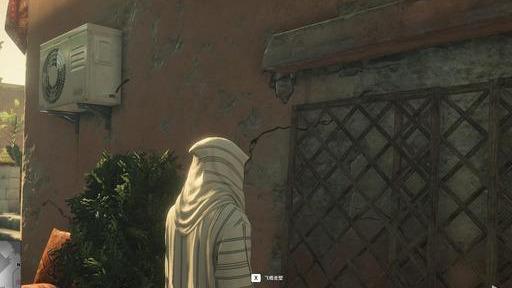 我们来到房顶的右侧,在墙壁这里触发X飞檐走壁(爬墙)。