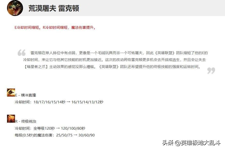 因为鳄鱼是第二时间进场,在血量健康时WQ起手先打一套,Q技能CD短,不怕放不出第二次Q。之后再利用双E穿插普攻积攒出第二次红怒,这时候血量较低触发坚毅不倒+叠满的征服者+渴血+红怒Q伤害爆炸,还能瞬间把血量抬上来。总之,红怒Q打到越多人越好。