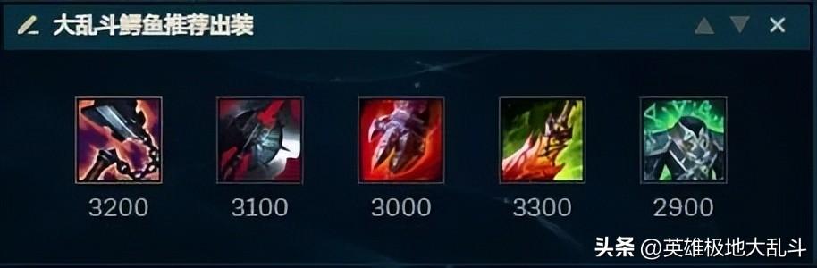 最后一件出振奋用来对抗AP英雄,振奋还能提升护盾和治疗效果,对鳄鱼来说比自然之力好用。