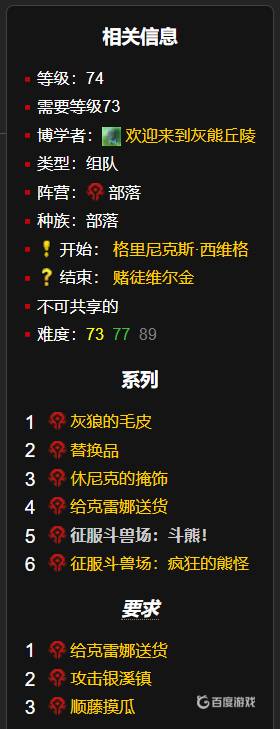 1、任务开始:玩家等级达到73级后可以在NPC格里尼克斯·西维格(灰熊丘陵,征服堡)处接取任务。