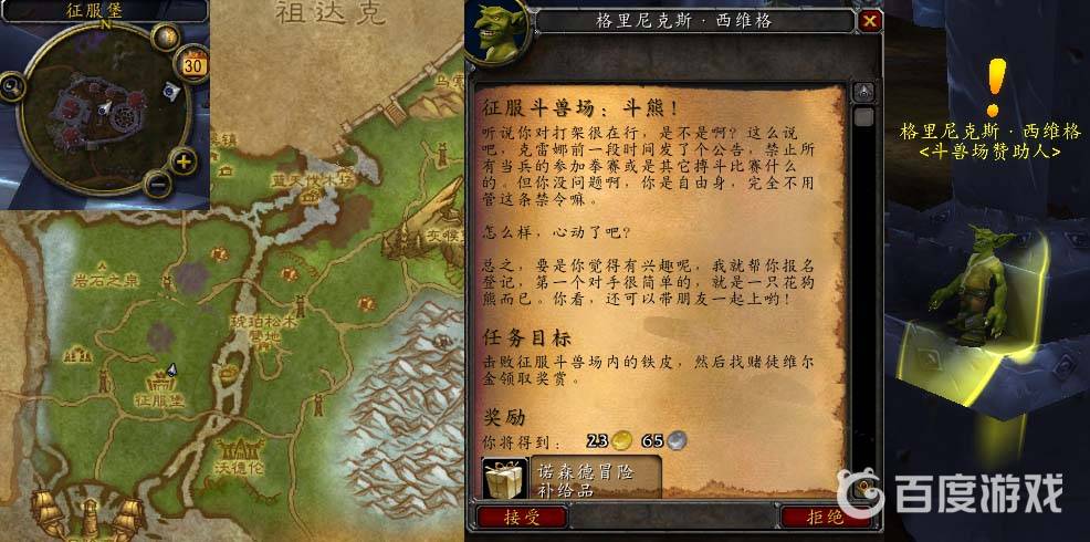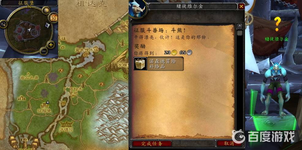 3、任务交付:找到NPC赌徒维尔金(灰熊丘陵,征服堡)交付任务,可以获得诺森德补给品奖励。