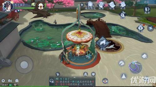 坐在闲游秋千上荡秋千,可以蹭别人的秋千,也可以在趣游记花2000兑换;