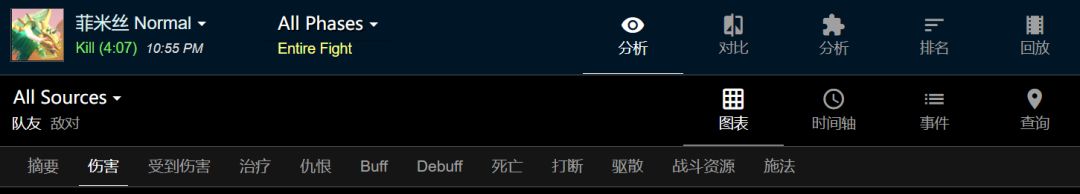 不仅如此,从log回放中可以看到菲米斯没有目标四处转向,也不放技能,全团轻松将其击败。