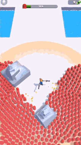 Rush!》有一个可爱的中文译名《突突冲锋队》,这是一款主打“孤胆英雄”主题的射击闯关手游,游戏中玩家将控制一个角色在各个关卡场景战斗,每个关卡都有满屏的敌人,玩家的任务就是利用手中的枪械去射杀全部的人,一旦被敌人碰到即死亡,但玩家可以利用自身的走位和地图中的特殊地形来进行躲避。