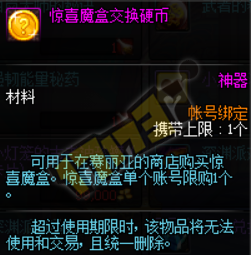 同时,典藏包还会附赠惊喜魔盒交换硬币,可以在赛丽亚处兑换惊喜魔盒。