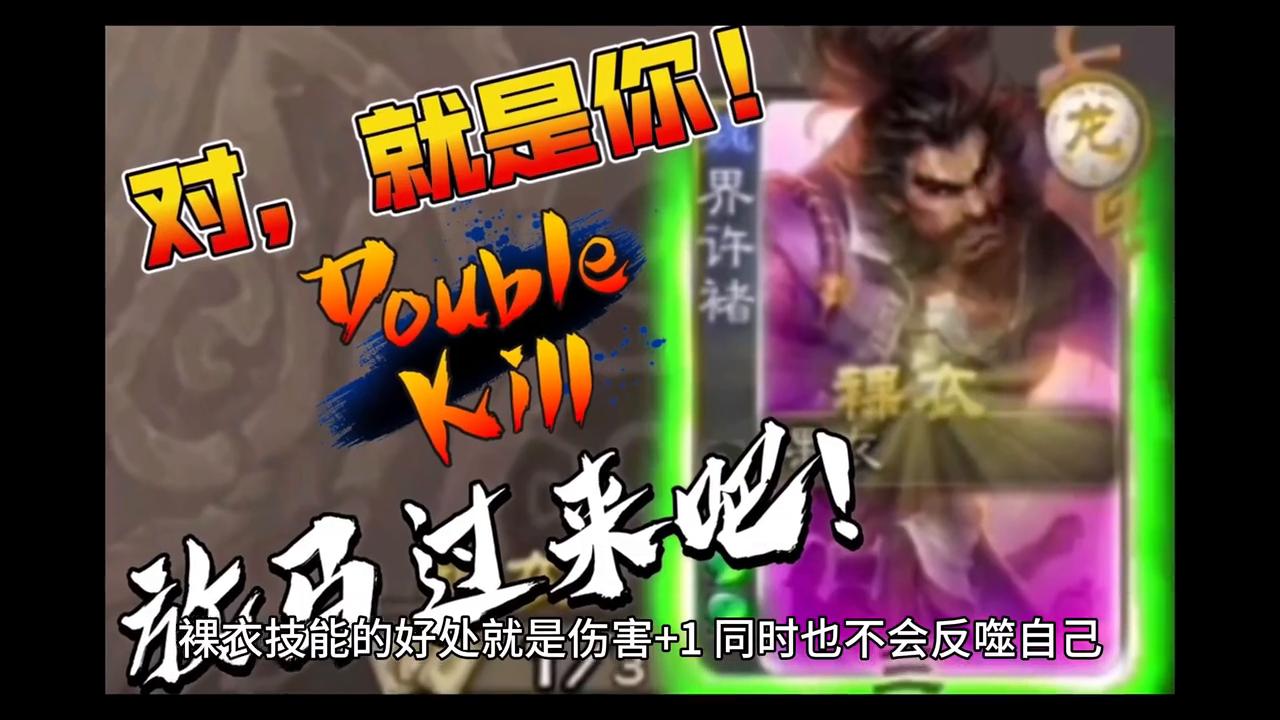 “裸衣”:在摸牌阶段,你可以少摸一张牌,然后在本回合使用【杀】或【决斗】造成伤害时,此伤害加1。虽然“裸衣”技能可以增加伤害,同时不反视自己,但少摸一张牌也会使技能削弱一半。因此,许褚需要更多的手牌来配合。他是一个强大的输出点。