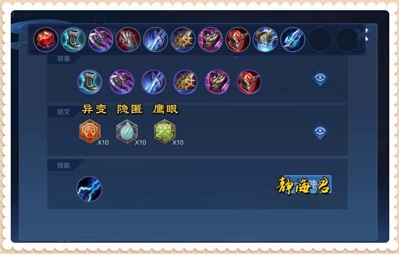 孙策的推荐铭文是:10异变、10隐匿、10鹰眼。