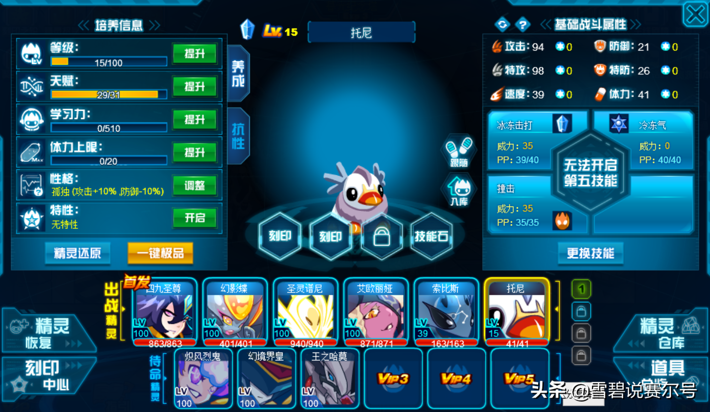 不过精灵技能组可以,唯一短板的是精灵比较脆皮,75的体力净含,怎么刷都是被对手一下,即使有可能遇到的是克制系,如果对手出招,75的体力说真的,有点“极限”。但这依旧不能阻止玩家对托尼的喜爱,花金豆买胶囊抓托尼的大有人在。