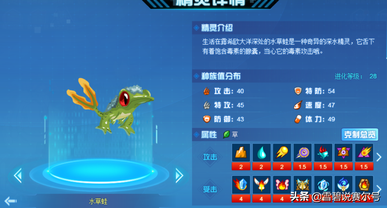 不过还是培养到高级形态了,但可能因为当时有一只70多级鲁加斯的缘故,我并没有对这个精灵有过多的培养。不过在PVP精灵王之战中遇到过,唯一的短板可能就是感觉速度不怎么快吧,我先手直接强化将其劝退。
