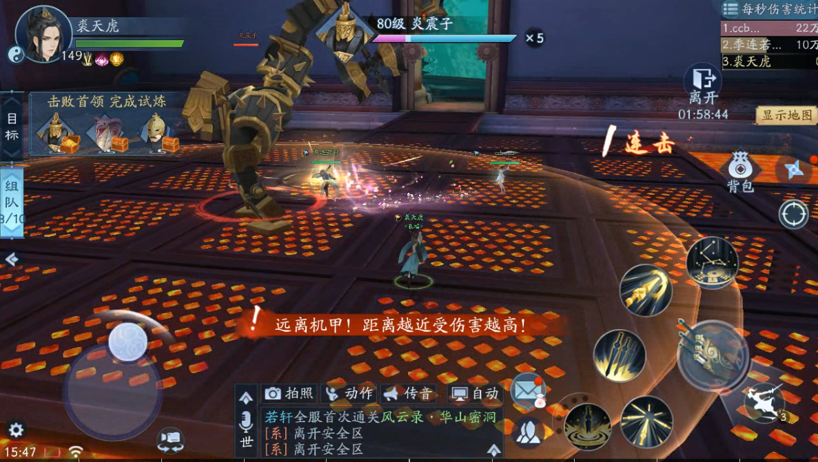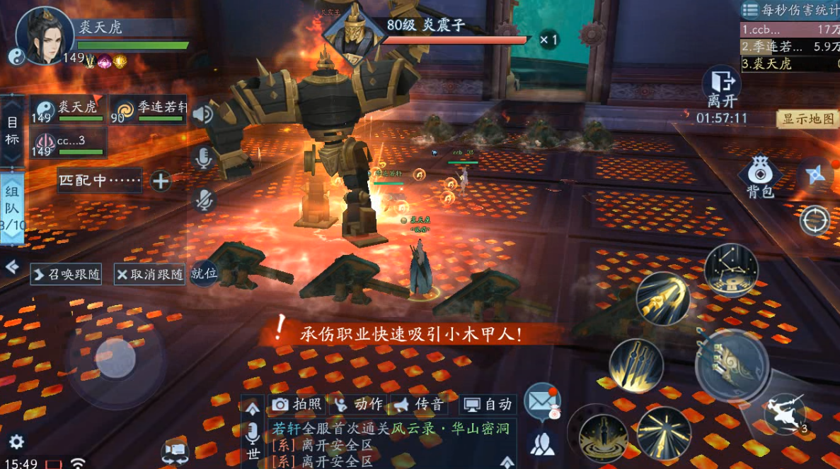 炎震子的第3个技能是沿着直线冲撞击晕第一个触碰到的目标,并且附加5次AOE伤害,因为这个技能没有任何警示,所以很难躲闪,一旦被控要及时交解控技能,并且利用轻功躲避接下来的AOE,不然很容易被秒。第4个技能是召唤小怪,这些小怪会盯着输出位,所以最好是让主T拉住BOSS,然后其他人集火清理小怪。这里千万要注意,不要因为贪输出而放任小怪在场上,我好几次翻车都是因为没清小怪。