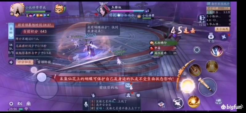 地图中有3朵仙花,仙花上会刷出蝴蝶。玩家采集蝴蝶后10秒内可解除周围队友毒buff+加速。