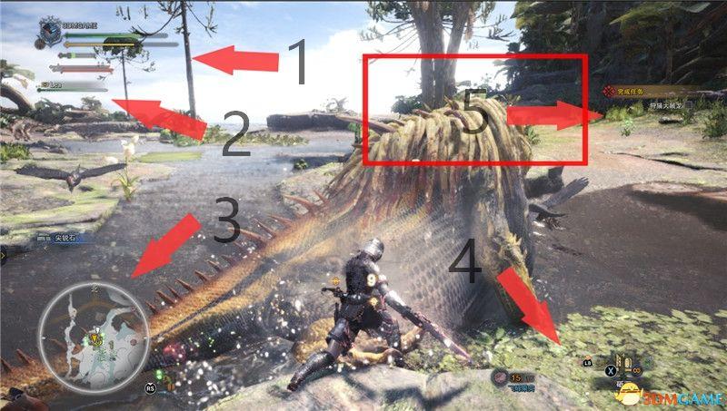 小地图的作用是显示附近的可收集物品,另外它还显示周围的龙怪。