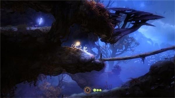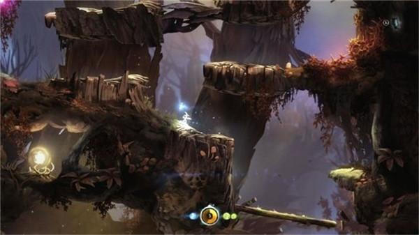 奥日需要以飞檐走壁登上一层木桥,在每一段木桥上奥日都需要用跳跃来躲避飞来的炎弹,最好就是跳到左右两端的石台上暂时缓一缓。