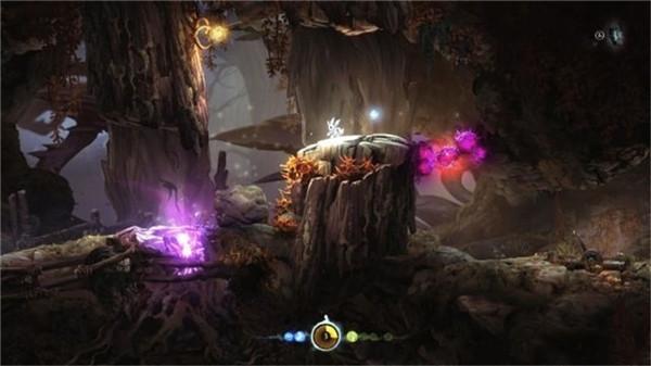 多年以前,精灵之树曾大声叫说要找到奥日。但那时赛安他们遭受敌人的袭击和追杀,而身负重伤。到如今,就剩下这些先祖之树了。靠近一点,感受一下它的光芒。这个精灵就藏在这枯树里面。