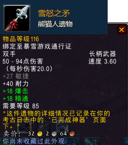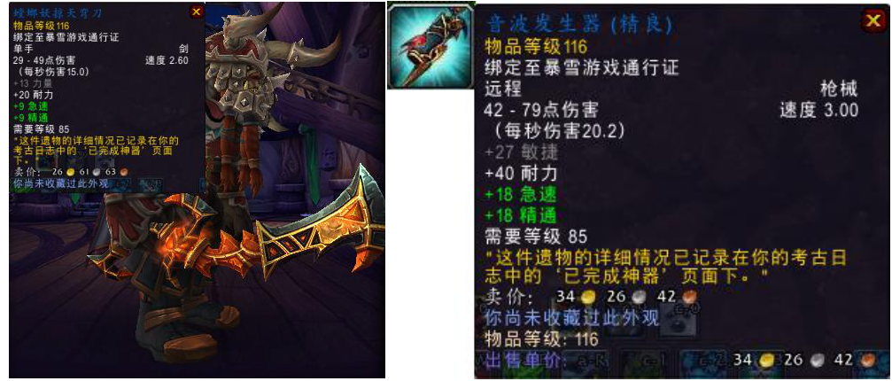 比较有意思的是:考古出来的装备,85级就可以用,明明是90级的版本啊。
