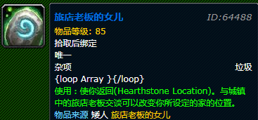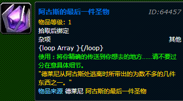 依次是:艾萨拉女王的便袍 (胸部装)、卡多雷风铃 (玩具、)扭曲骸骨 (玩具)、小精灵护符 (玩具 )