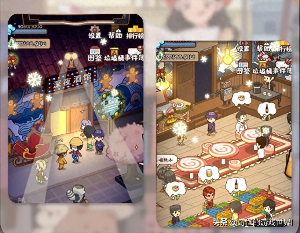 画风简洁可爱的经营类放置游戏,有点深夜食堂”的感觉~店内设施越完善,来消费的顾客就会越高级,金币也会更多,但是好像今年就没更新过版本了~