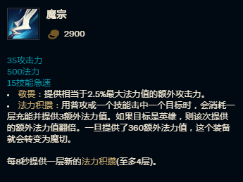 魔切是一件传说装备,因为波比选择的肉装一般都是加速甲、蓝盾、石像鬼石板甲这类没有蓝量加成的肉装,而女神泪的法力积攒可就以完美的解决波比的蓝耗问题,魔切也是法力值装备里唯一一个最适合波比的。魔切的被动敬畏能让波比的攻击和技能都能附带额外的物理伤害,当魔切成型以后波比的伤害将非常可观的,能对敌方后排造成极大的威胁。