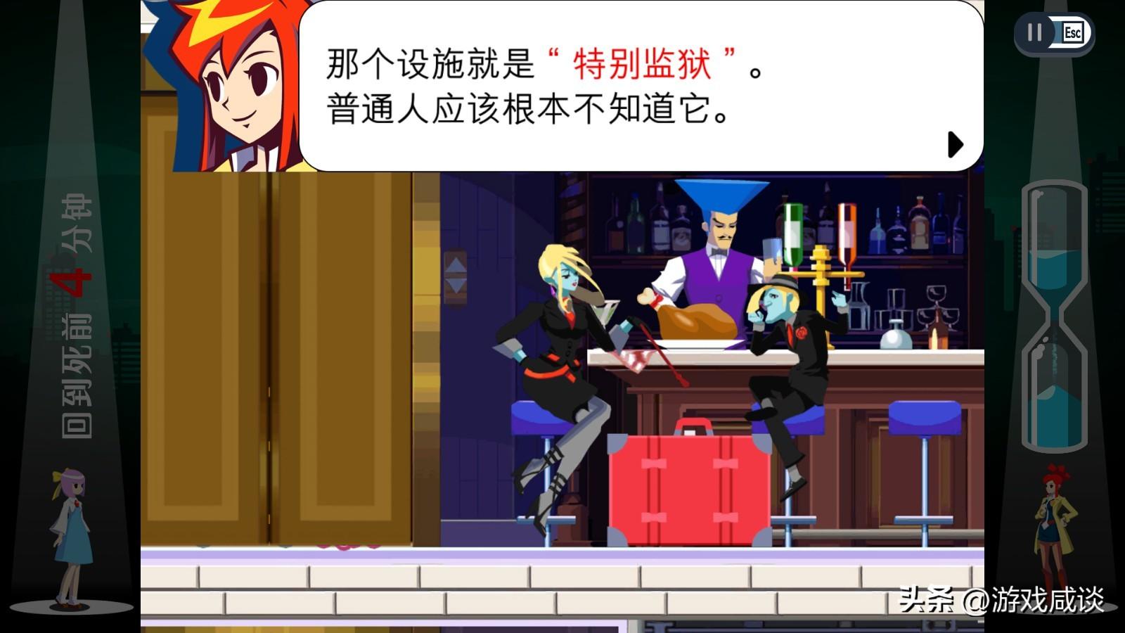 具体来说,当剧情推进到有重要角色被杀的节点,就会让主角西塞尔来运用这个能力挽救其生命,使事件朝向更有利的发展方向。比如女主角凛音,就死了好多次,有的是因为案件的幕后黑手要除掉她,有的则是因为一些意外,但每次死了之后就都需要西塞尔先将时间回溯到她死前4分钟,然后西塞尔进入附身状态,寻找死亡现场的一切可交互物体。这时候就需要玩家在有限的时间内,找到现场这些物体之间可能会产生的互动,然后通过附身上去的灵魂触发这种互动。这是类似于一种因果律的感觉,只不过因果由玩家扮演的西塞尔通过灵魂来进行控制,比如通过灵魂附身在一个可以发出声响的物体上,在凶手行凶时以突如其来的声音惊扰之,从而破坏其企图。