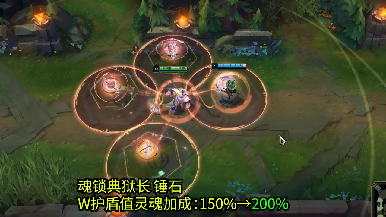 魂锁典狱长锤石的护盾值灵魂加成从150%提升至200%。
