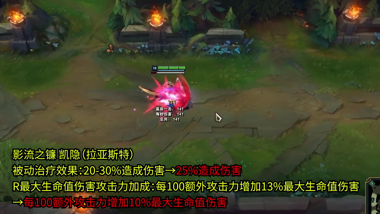 影流之镰凯隐(拉亚斯特)的被动治疗效果从20-30%造成伤害调整为25%造成伤害。