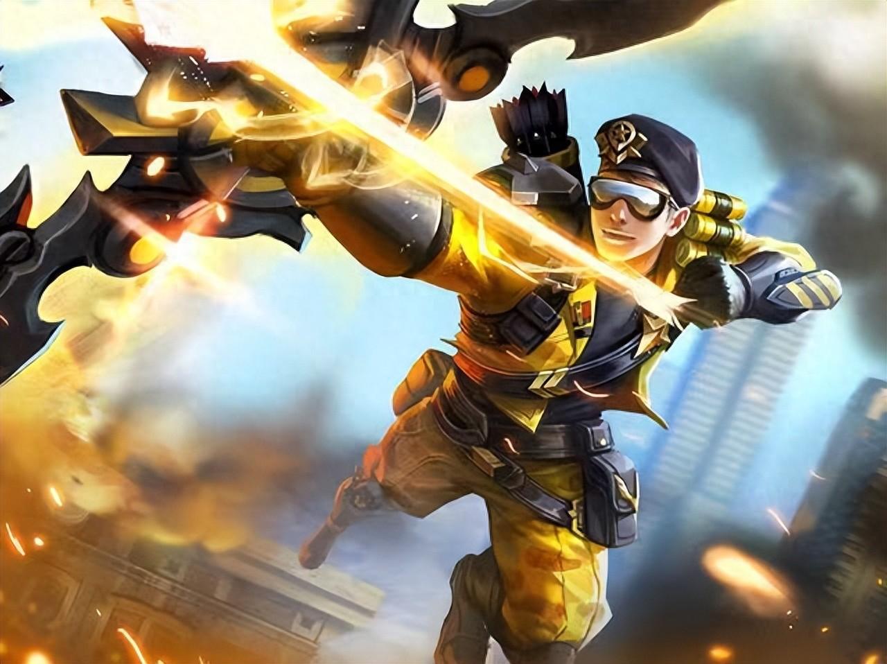勇者皮肤,这款皮肤结合了现代风格,墨镜显得霸气十足。颜色以黄色为主,比原皮颜色更深,皮肤中规中矩,打击感稍好一些,但是性价比不高,建模有点俗气,手感较重。