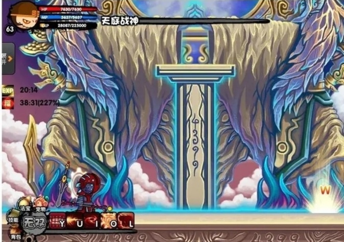 ,之后再重复第一步,也就是七十二斩加重斩,然后烈焰风暴,反复循环至到把天庭战神血打空,就通过了。