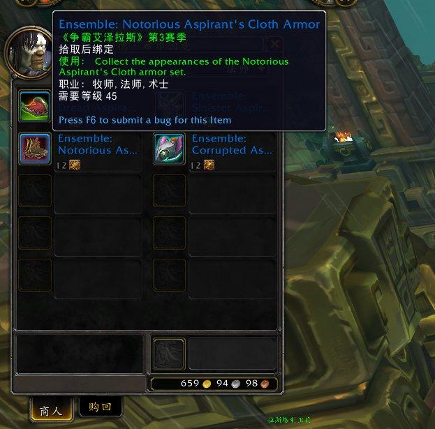 alpha的最新版本中,为了方便玩家幻化,暴雪开放了BFA角斗士套装的兑换。这些物品允许玩家从以前的PvP赛季套装中获得外观。目前这些套装分别由伯拉勒斯的布里埃尔元帅(Marshal