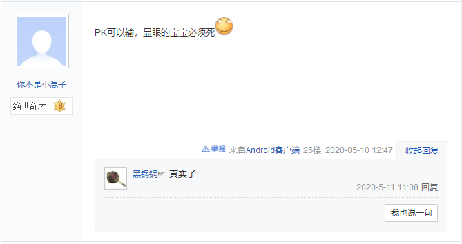 “PK可以输,显眼的宝宝必须死。”