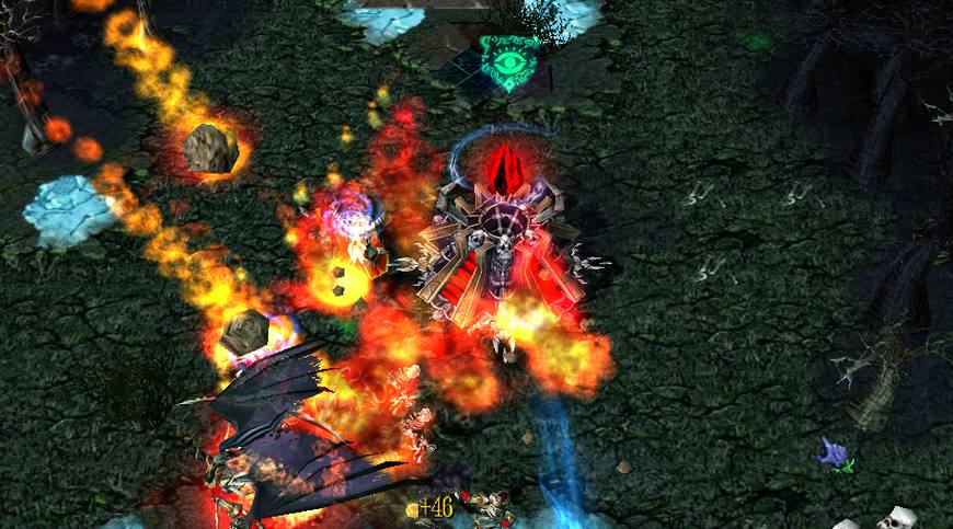 那么除了以上的这些技能以外,还有的技能则是“还算有用”以及“非常IMBA”的技能了,要说非常IMBA的技能,我觉得有那么三四个,但是最IMBA的肯定还是火电电捏合的火焰风暴,这个技能类似火焰雨,但是火焰流星从天空中落下的时候,会在地上生成一个小火团,这个火团会对周围的单位造成每秒的烧伤效果,存在8秒左右,8秒后,火团就会爆炸,对周围的敌人造成150的范围伤害,但是这个技能的效果可以对建筑物生效,所以这个技能直接砸到对方塔的旁边,8秒后直接瞬秒防御塔,因为这一轮火焰风暴能砸出接近20个火团!