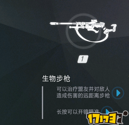 安娜的生物步枪每发生物针可以造成80点伤害或者75点治疗,伤害和治疗每发分为4次(每次20伤害,18.75治疗)造成,可以同时间可以叠加,每次射击有1.5秒装填,生物步枪不开镜有超快的弹道,开镜后变为HITSCAN