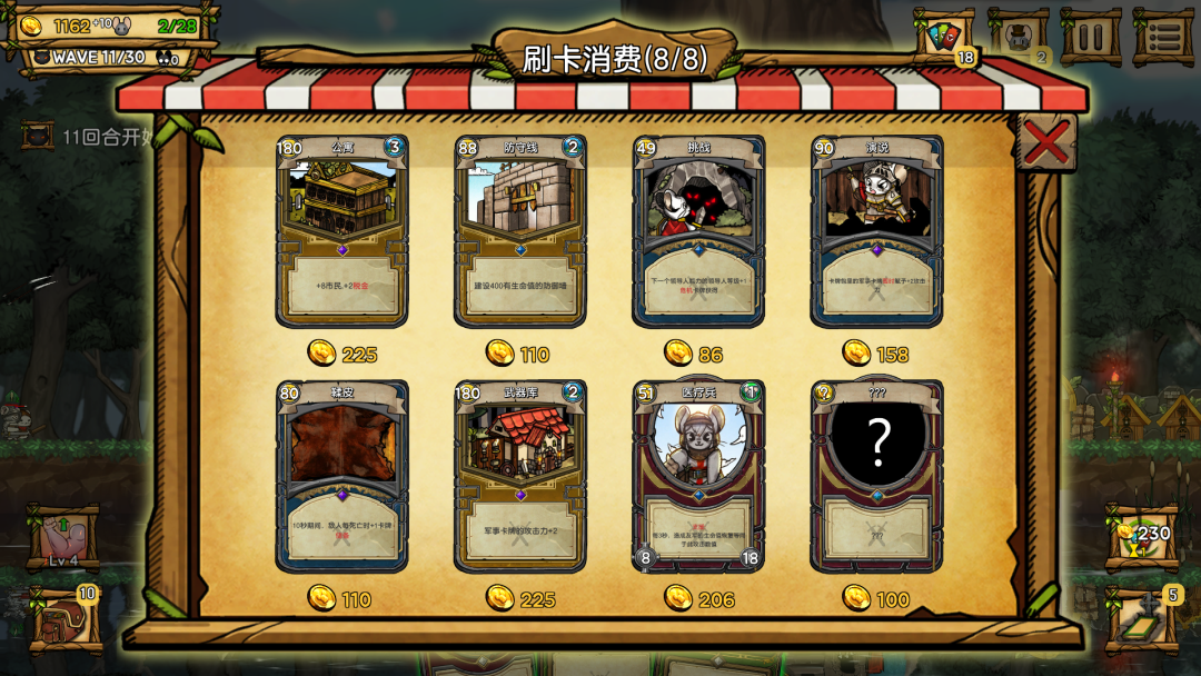 大多军事卡是能长期持有的卡牌,用于招募兵种,使用时只需要付出人口与金币代价,因此,只要资源足够,就可以在防线布置大量士兵。