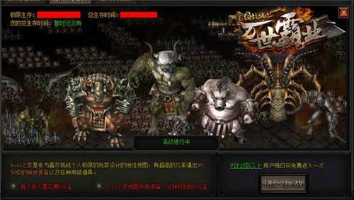 怪物攻城:在怪物攻城活动期间,点击在线活动按钮点击怪物攻城自动传送进入迷宫地图。点击传送后就会将你传送至盟众沙城处,这里已经被残暴的怪物所包围,你的使命就是扫荡干净这些残暴的怪物击败他们的首领夺回宝物平常争抢激烈的世界BOSS在这里随处可见,与未知暗殿唯一的不同,这里所有的BOSS都是真的真真切切,打掉一个赚一个。赶紧喊上你的好基友每周日扞卫沙城,击败BOSS数量最多的玩家会被人世所传诵。