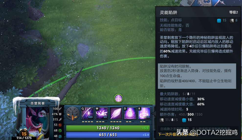 关于二技能隐匿,作为圣堂刺客爆发的核心技能,在配合一技能折光后,能够打出高额的瞬间伤害,所以隐匿的释放好坏对圣堂刺客至关重要。玩家在刚刚接触这个英雄时,往往会遇到一个问题——隐匿一击打不到人。而造成这个问题的原因主要有两部分,一部分是对英雄本身攻击范围的把控不足,另一部分则是隐匿后自己就走出来了。第一部分玩家可以通过练习(尤其是实战),多去找找感觉。第二部分玩家,据我了解多是在用了隐匿后,A英雄时,手滑点到地上所导致的。这里补充一个“A键党“福利,在DOTA2客户端,设置→选项中,把自动攻击关了,选择快速攻击。