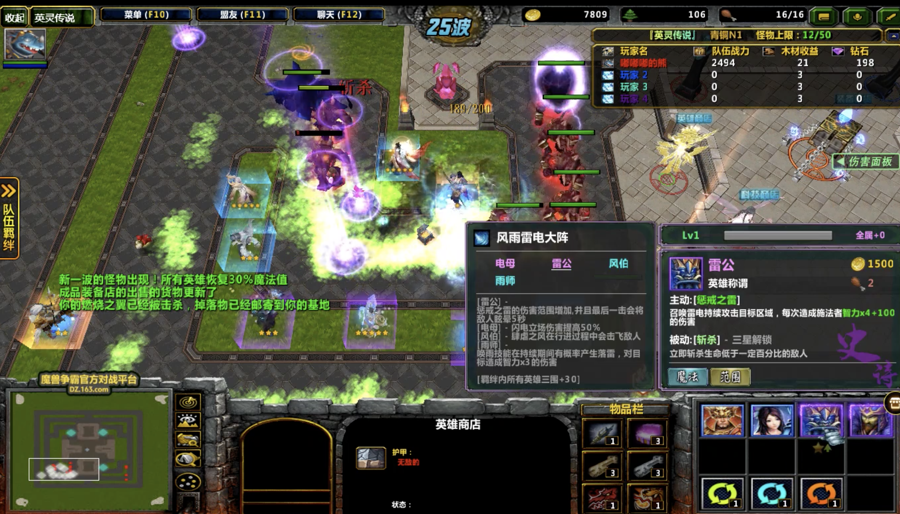 阵容组成:雷公、电母、雨师、风伯、紫霞仙子、孙悟空、项羽、虞姬、刘邦、韩信