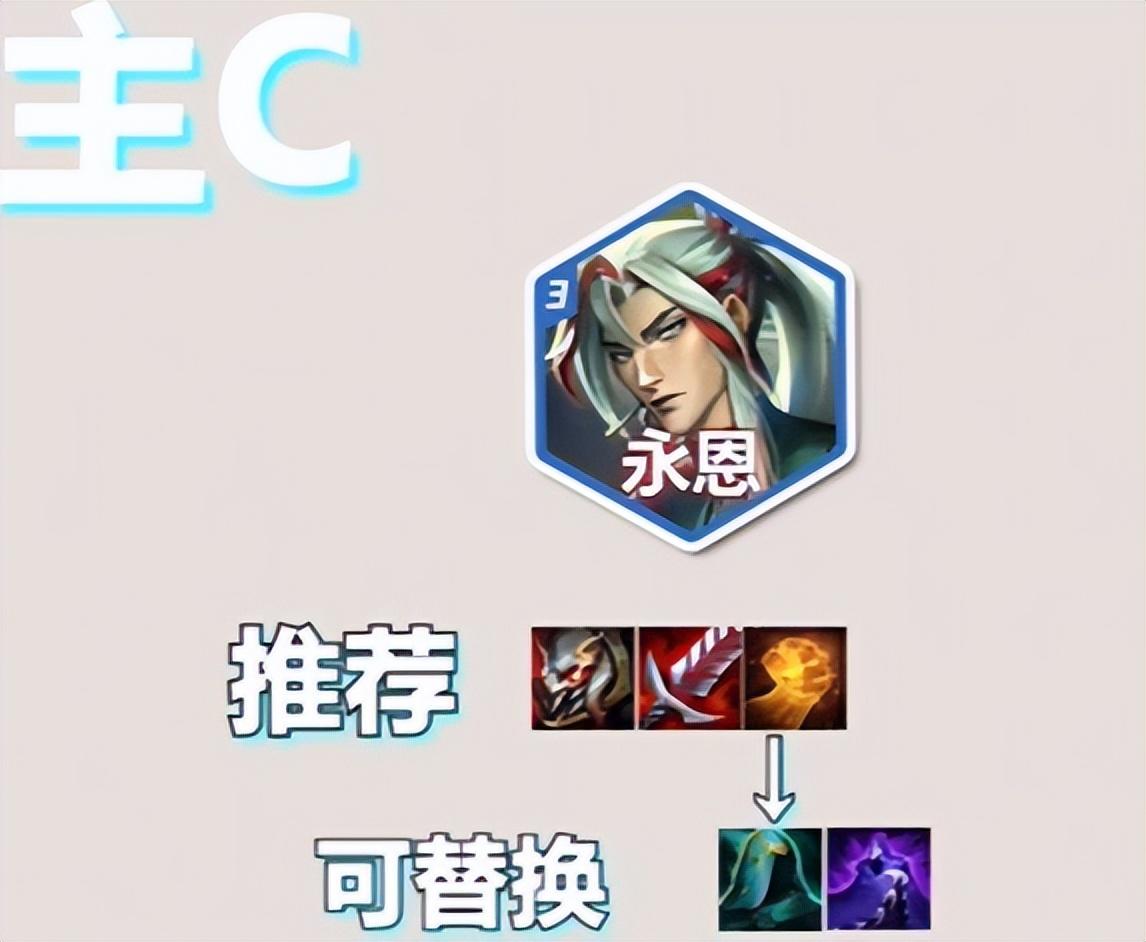 解析:突出吸血能力,加强容错力度,团队搭配有效输出,面对多控制阵容需水银或者走位注意。