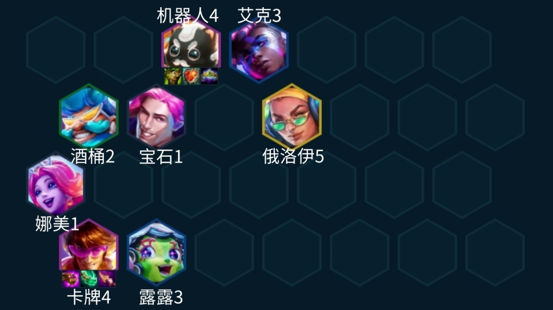 4-2拉8,8人口开始找卡牌或者机器人的天选,开出至少5迪斯科,然后再根据天选情况去调整羁绊了,俄洛伊算是非常好用的卡,前期一张就能提供不错的前排。琴女如果没有启动装备这个阶段就不如炸弹人好用了,新版高能流行加强不少。