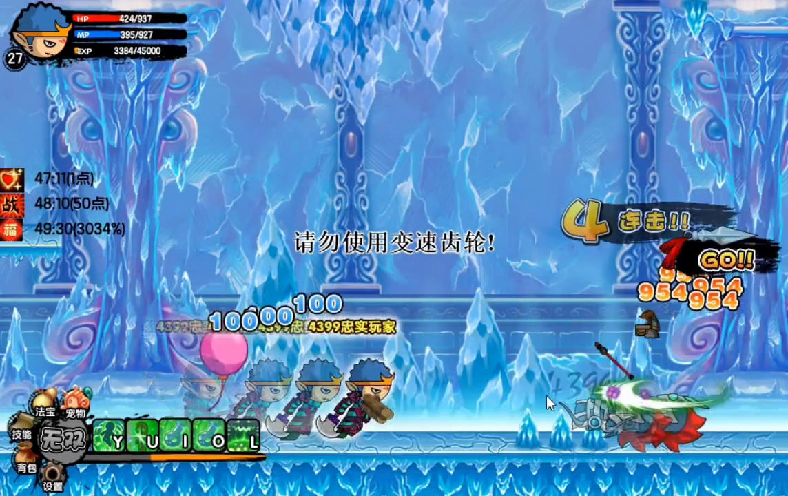 接着,我们进入了下一关。在这种情况下,我们可以使用减速技能来打小怪,这样可以快速消灭它们。