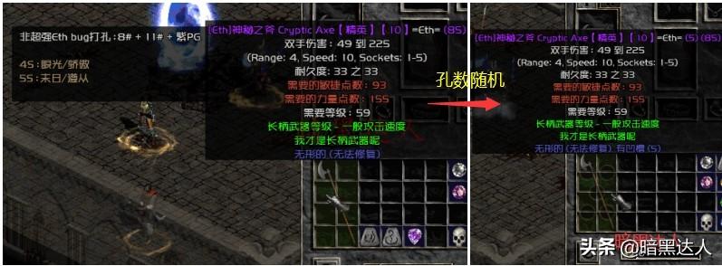 1.非超强。如果底材带有超强属性,例如超强的巨长斧、超强的幻化之刃、超强的神秘之斧等等,就无法使用盒子打孔,只能通过第五幕第一个任务打出最大孔,上面这三个底材只能任务打出6孔巨长斧、6孔幻化之刃和5孔的神秘之斧(这个底材最大孔只有5孔)。