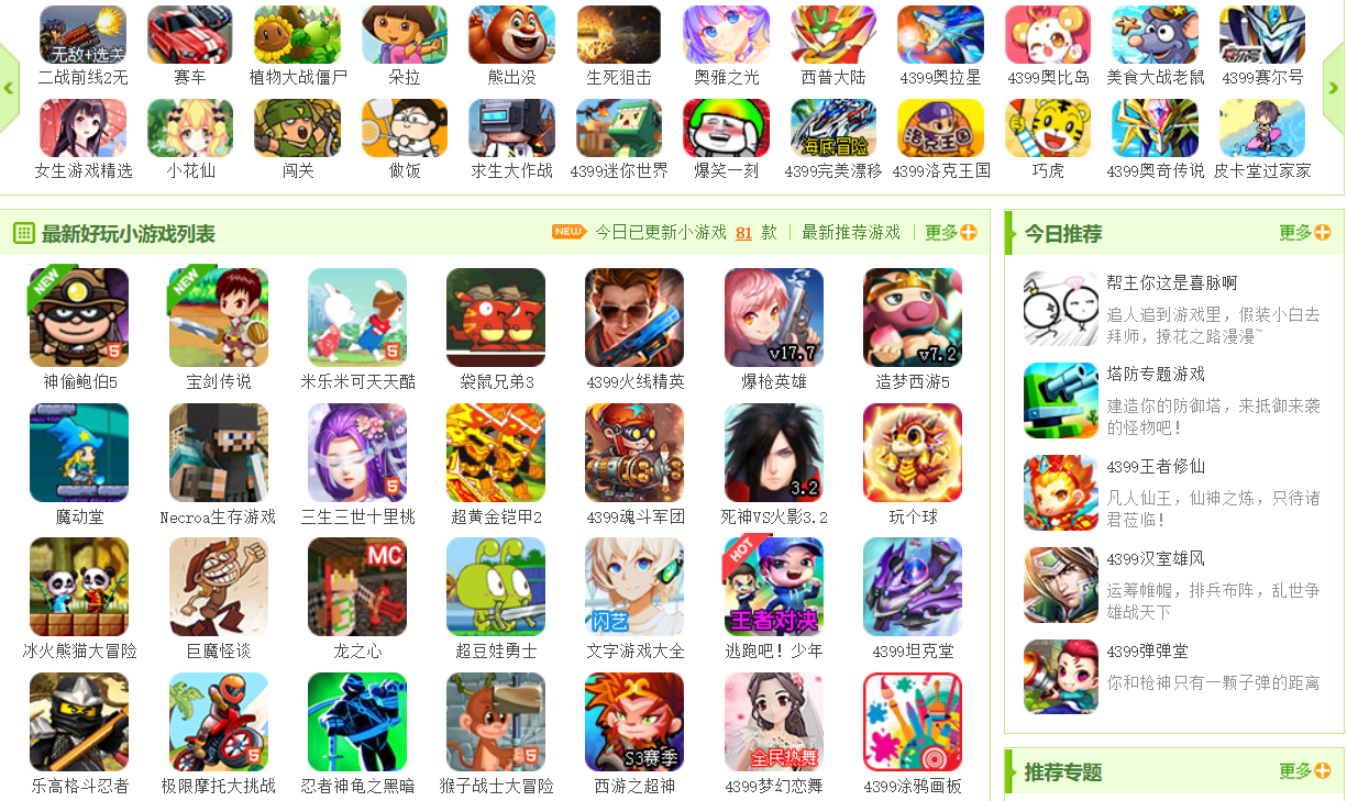 小时候,因为物质条件和家庭因素的限制,我们很难尽可能地玩到当时的单机和网游,这时,小游戏网站上的游戏就成了难得的娱乐方式,这些游戏或许不够高端,但却为我们带来了欢乐。下面,本喵就列举一些小游戏,不知道各位读者是否有印象呢?