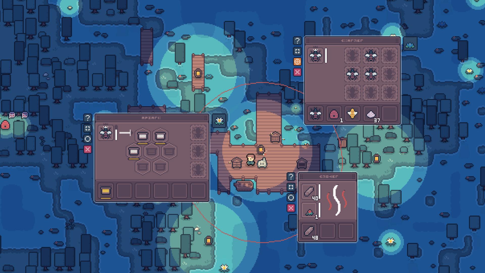 为了完成养蜂这个目的,我们需要外出探索,在寻找蜜蜂的同时收集各种材料,拾取各种垃圾,采集各种资源。然后回到家利用工作台进行加工,制作蜂箱、蜂房,制作房屋火堆,制作温度控制器环境控制器,研发科技升级材料,实现自动化生产,去更远的地方冒险,寻找更为稀有的蜜蜂。这方面的玩法和泰拉瑞亚非常类似。