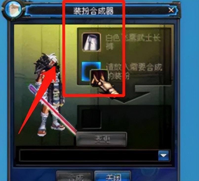 2、玩家打开背包,右键点击金装扮合成器,放入两件高级时装进行合成,有一定概率合成稀有时装,也就是玩家们常说的天空套。