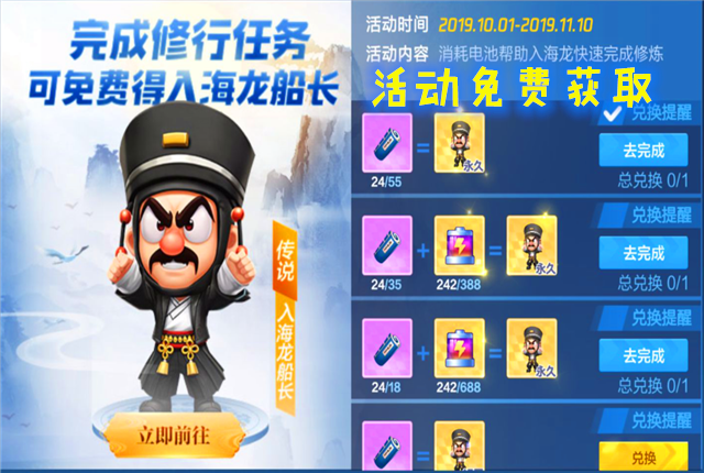 如果大家只是想获取“侠客召集令”里的炫光和头像框,对入海龙船长没什么兴趣。那么大家只需要用11个碎片兑换15天的船长即可。因为不管是限时还是永久车手,都可以点亮活动图标,全部点亮便可获得活动奖励。
