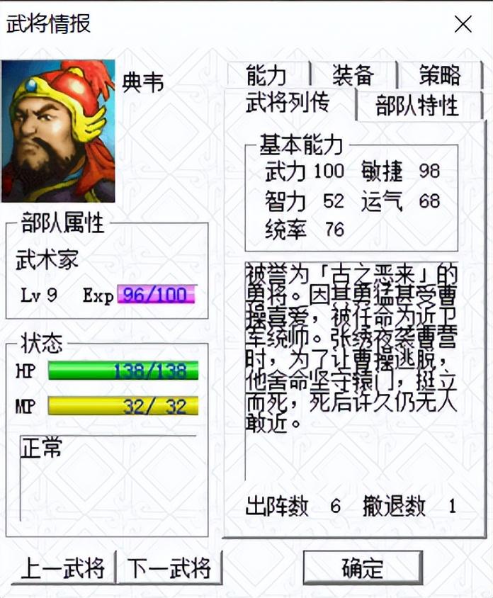 这个人物适合压级的最大原因是在宛城可以把他送掉,如果宛城选择保典韦,那么典韦对于压级就没有太大的帮助,选择送掉典韦的话,那么一些必须全灭敌人的关卡,典韦就是主要输出力量,敌兵都给他打,让他吃经验,然后在宛城送掉典韦就可以把等级拉下去。