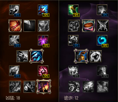 第一套天赋是为了凸显扇子妈的对线强势,为了取得优势而选择的天赋,偏向于carry比赛而非安心做一个纯粹的辅助。而第二套符文恰好相反,是一套纯辅助的天赋,两套天赋各有优劣,第一套更强势,但是万一没有取得优势那就懵逼了,第二套的话就是一套稳健的天赋选择了。